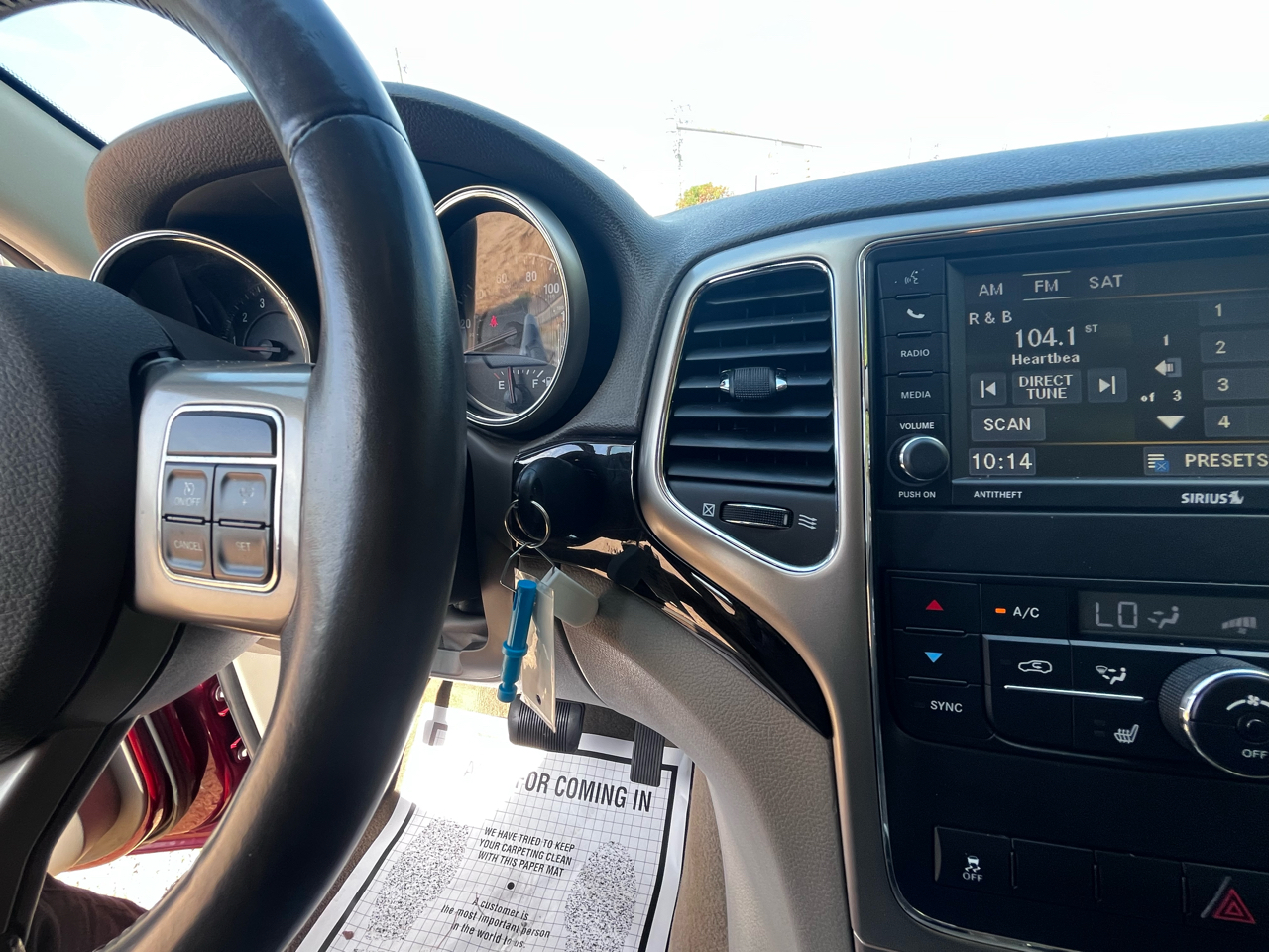 Step inside and discover a world of comfort and convenience. The interior features a range of amenities designed to enhance your driving experience, from the leather-wrapped steering wheel with audio controls to the luxurious front/rear floor mats. With folding rear seats and a spacious cargo area, this Jeep offers plenty of room for all your gear, making it the perfect companion for your next road trip.