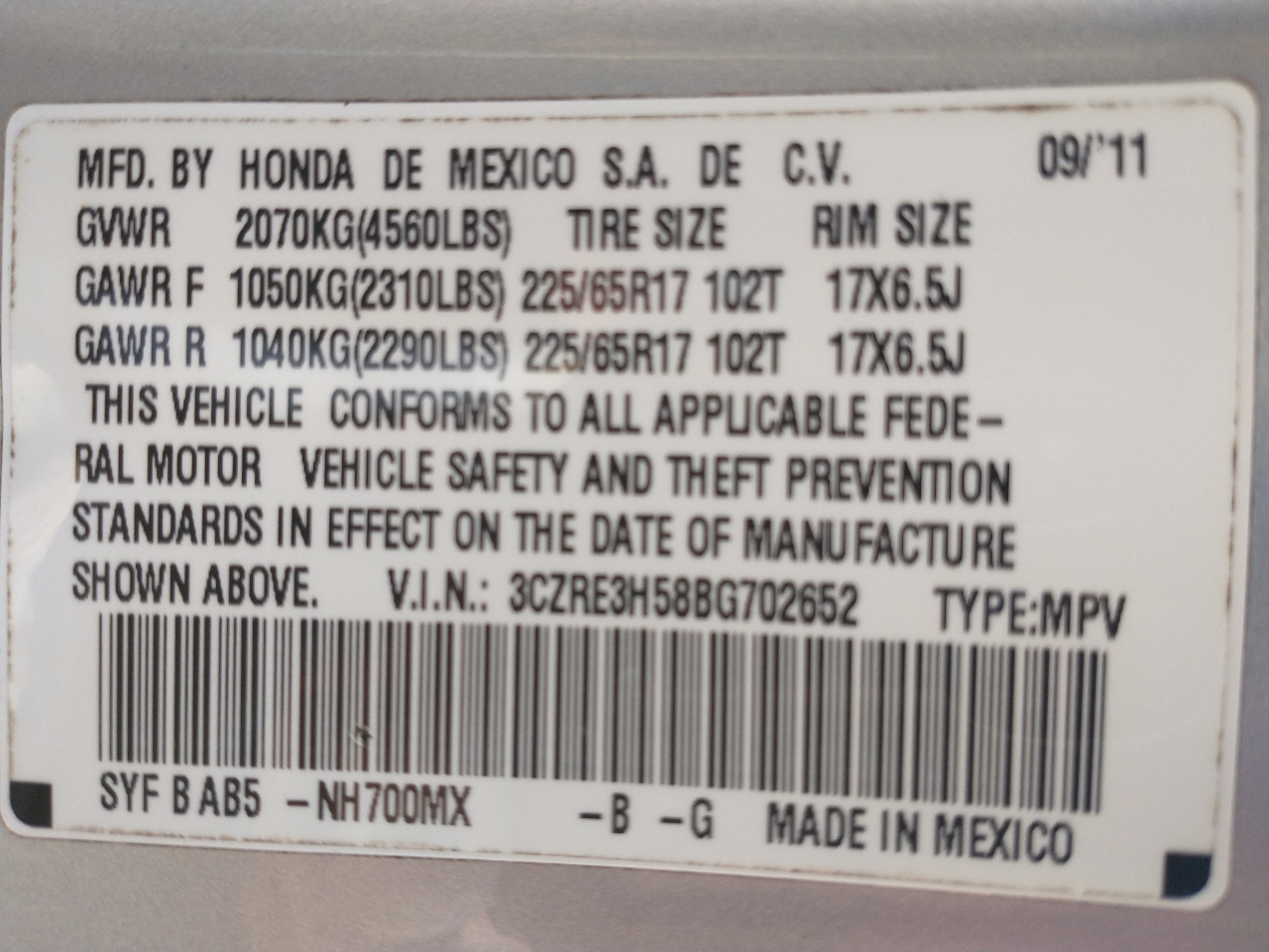 3CZRE3H58BG702652